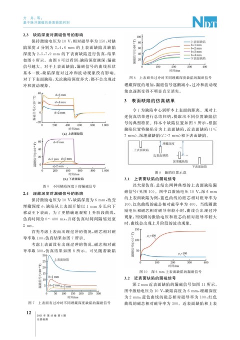 2.4 埋藏深度对漏磁信号的影响 磁信号( 见图 10 )。图中以激励电压 10V , 深 6mm