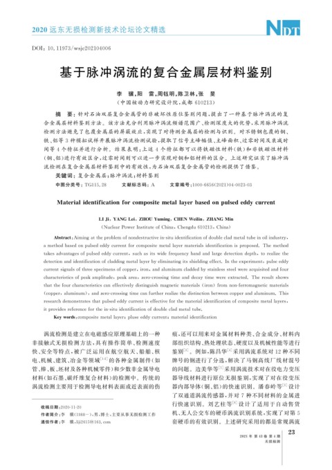 快、 安全等特点, 被广泛运用在航空 航天、 船舶、 核 鉴别 [ 3 ] 。例如, 陈昌华 [ 4 ] 采用涡流系统对 12 种不同