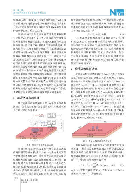 例如, 徐平 [ 2 ] 采用脉冲涡流穿透包覆金属层实现了