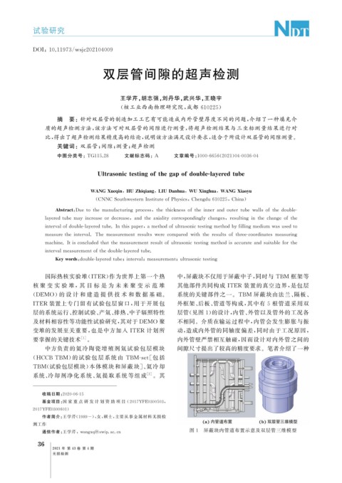 质的超声检测方法, 该方法可对双层管的间隙进行测量, 将超声检测结果与三坐标测量结果进行对