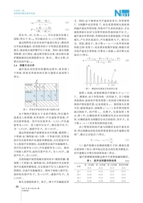 超声 波 在 双 层 管 内 传 播 的 过 程 中, 涉 及 到 3