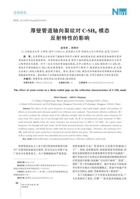 通信作者: 赵华民, zhaohuamin909@163.com 大学者研究了裂纹、 开槽 [ 7-10 ] 和其他类型缺陷之间