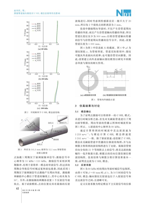 和缺陷中心都位于管道的轴线上, 其中心的夹角为 C-SH 0 模态, 轴向裂纹反射波包位于入射波信号和