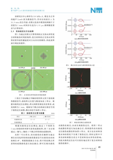 获得的成 像 曲 线 进 行 加 法 融 合, 即 可 实 现 双 曲 线 损伤检测中。