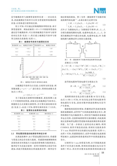 系, 因此晚期信号斜率可以作为管道壁厚检测的特 流检测等效电路 [ 11 ] , 由基尔霍夫定律可知