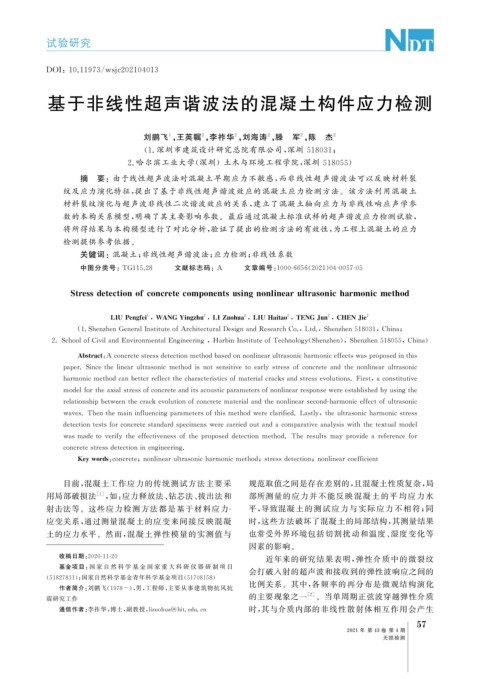 数的本构关系模型, 明确了其主要影响参数。最后通过混凝土标准试样的超声谐波应力检测试验,