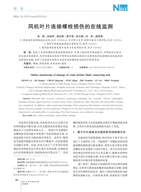 信号监测及数据分析技术的不断提升, 在线监测技 进行了大量研究工作。闫航瑞等 [ 2 ] 对螺栓连接结构