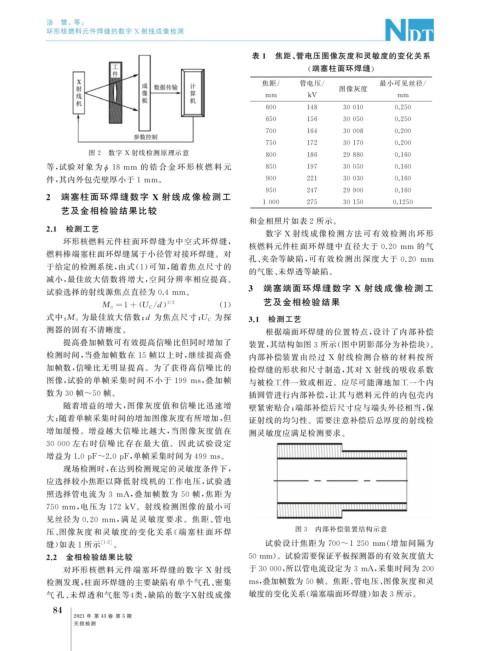 对环形核燃料元件端塞环焊缝的数字 X 射线 于30000 , 所以管电流设定为 3mA , 采集时间为 200