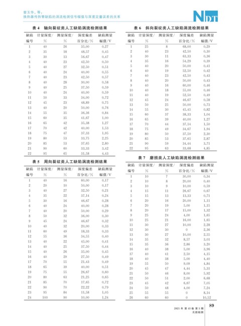 表 4 轴向裂纹类人工缺陷涡流检测结果 表 6 斜向裂纹类人工缺陷涡流检测结果