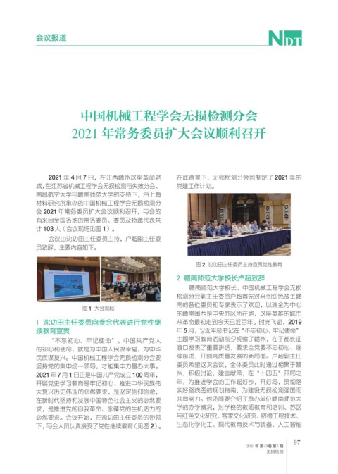 2021 年 4 月 7 日,在江西赣州这座革命老 在此背景下,无损检测分会也制定了 2021 年的