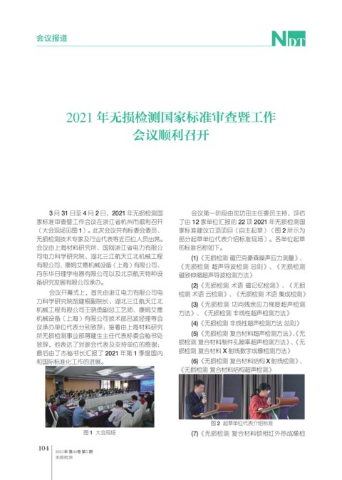 家标准审查暨工作会议在浙江省杭州市顺利召开 了由 12 家单位汇报的 22 项 2021 年无损检测国