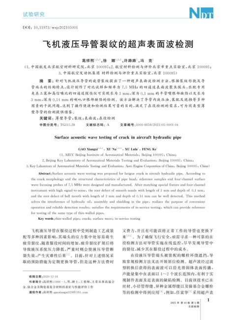 关键词:薄壁导管; 裂纹; 表面波; 在役检测
