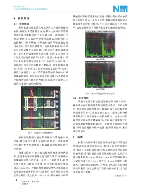 Masterscan 380 。拧紧前调整增益使喇叭口根部缺陷 的结果表明, 该方法满足了在役检测的要求, 为飞行