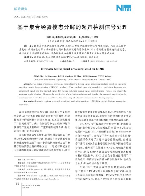 行处理。张坤硕 [ 9 ] 在使用 EMD 方法处理超声检测