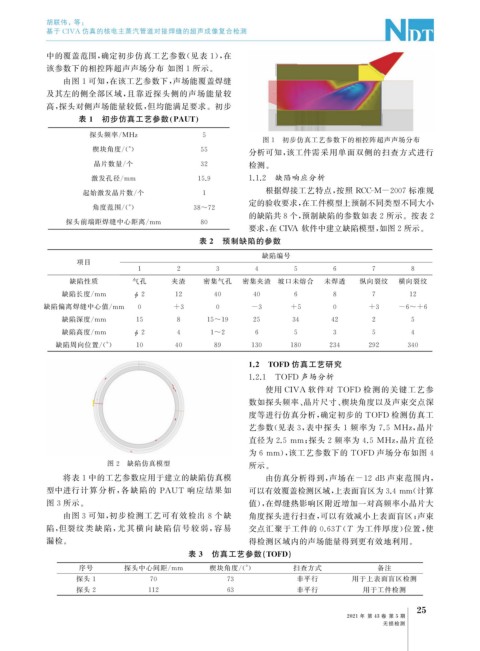 型中进行 计 算 分 析, 各 缺 陷 的 PAUT 响 应 结 果 如 可以有效覆盖检测区域, 上表面盲区为3.4mm ( 计算