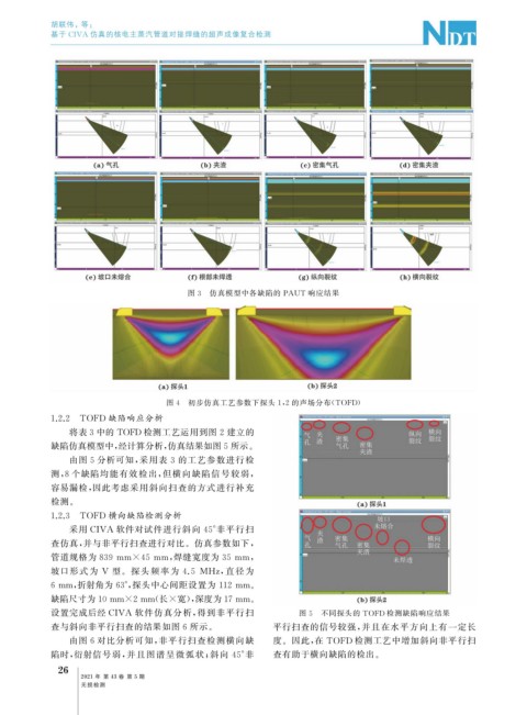 设置完成后经 CIVA 软件仿真分析, 得到非平行扫 图 5 不同探头的 TOFD 检测缺陷响应结果