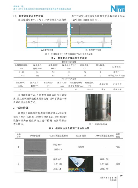 通过分别对 PAUT 与 TOFD 检测技术进行仿 ( 表中斜向扫查角度为 45° )。
