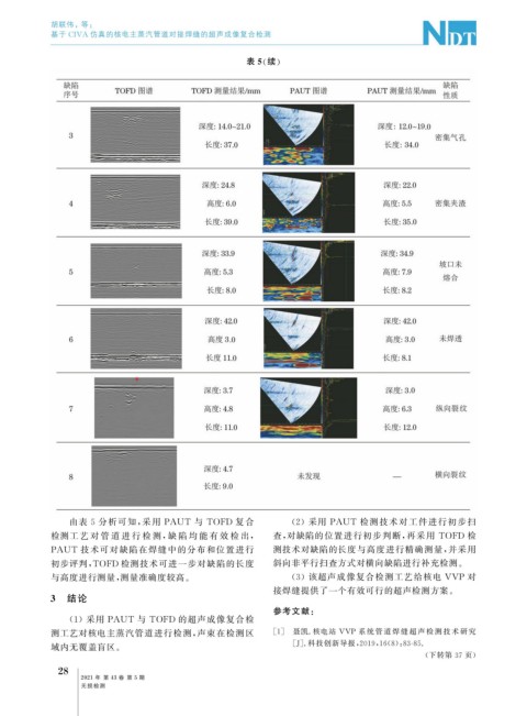 与高度进行测量, 测量准确度较高。 ( 3 )该超声成像复合检测工艺给核电 VVP 对