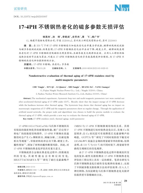织 的 变 化,其 磁 性 能 也 会 有 相 应 的 变 化。 化的复杂, 磁性无损检测在 17-4PH 不锈钢热老化