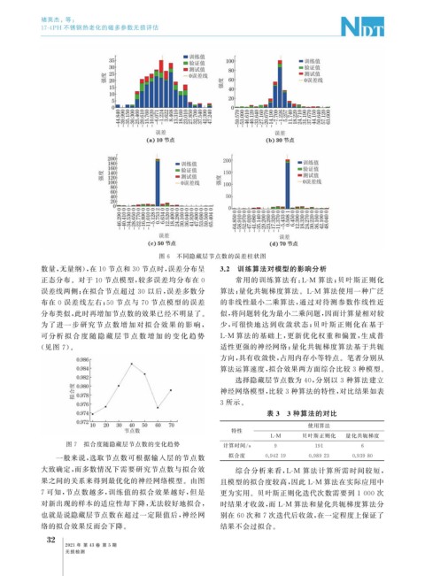 数量, 无量纲), 在 10 节点和 30 节点时, 误差分布呈 3.2 训练算法对模型的影响分析