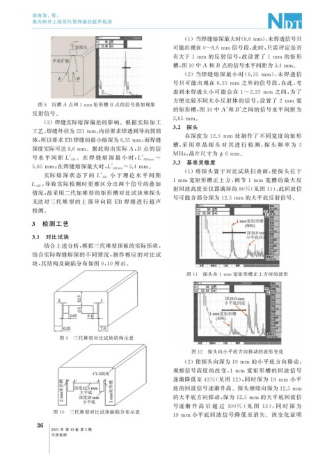 槽, 采 用 单 晶 探 头 对 其 进 行 检 测, 探 头 频 率 为 5