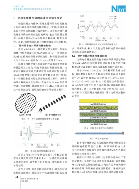 研究骨料层密度的变化导致的导波回波信 号的变 基于 MonteCarlo 方法, 以骨料面积占比为指