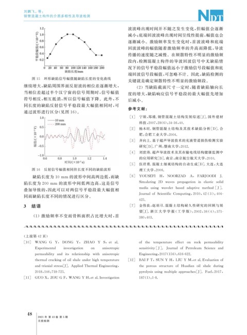 继续增大, 缺陷周围界面反射波的相位差逐渐增大, ( 2 )当缺陷截面尺寸一定时, 随着缺陷轴向长