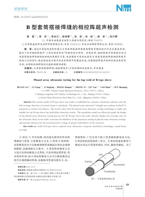 Ke ywords : la pweldofB-t yp esleeve ; p hasedarra yultrasonic ; com p utersimulationtechnolo gy ; soundbeam