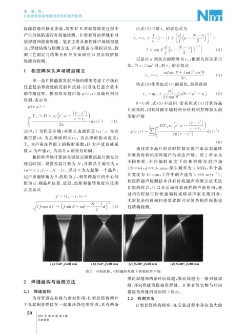 接焊缝和搭接焊缝。笔者主要从相控阵声场模型建 c f 2