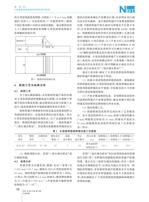 4 检测工艺与结果分析 待检焊缝的结构、 B 型套筒的壁厚、 搭接焊缝的垂直