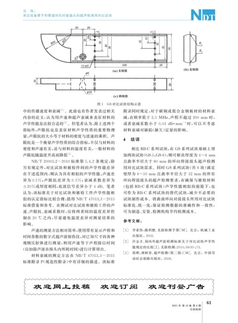 标准借鉴和参考。在测试对比试块和被检工件的声 标准化、 统一化, 保证检测数据的准确性和一致性,