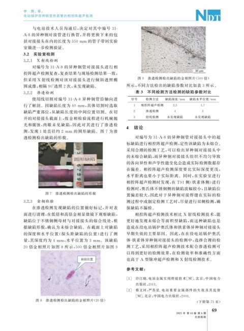 面进行清理, 在低倍和高倍金相显微镜下观察缺陷, 相控阵超声检测技术相比 X 射线检测技术, 能