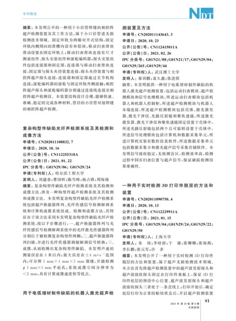 内; 可分辨 5 mm×1 mm×5 mm 裂 缝, 并 能检测 脱层的方法和装置, 属于超声无损检测技术领域。