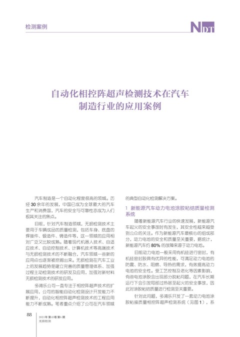 能力不断成熟。笔者重点介绍了公司在汽车领域 胶粘接质量相控阵超声检测系统(见图 1),系