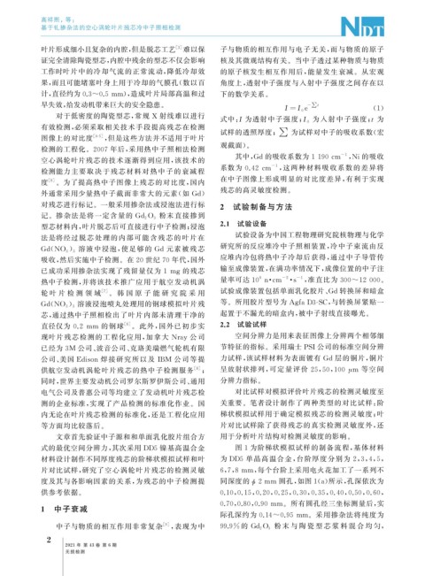 文章首先验证中子源和和单面乳化胶片组合方 用于分析叶片结构对检测灵敏度的影响。