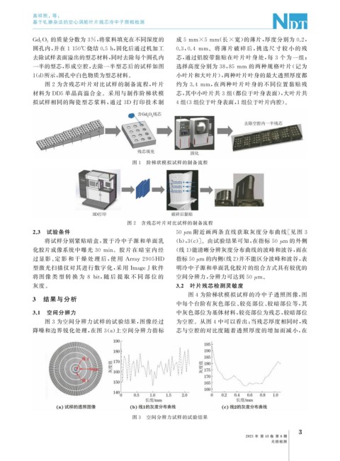 1 ( d ) 所示, 圆孔中白色物质为型芯材料。 小叶片和大叶片), 两种叶片叶身的最大透照厚度都