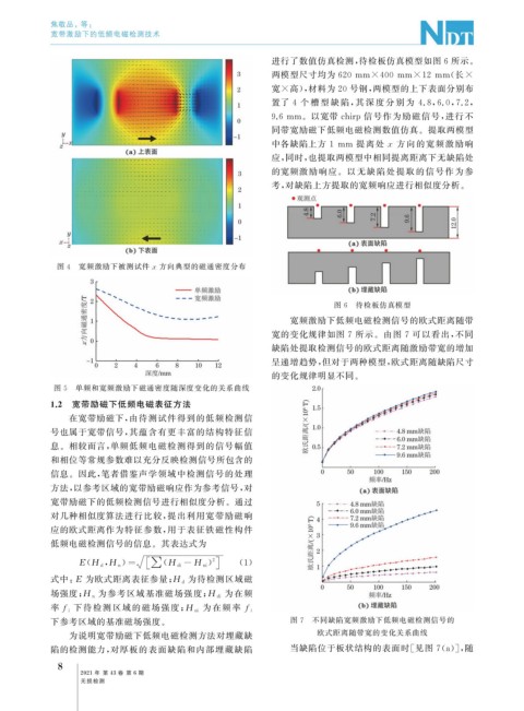 置了 4 个 槽 型 缺 陷, 其 深 度 分 别 为 4.8 , 6.0 , 7.2 ,