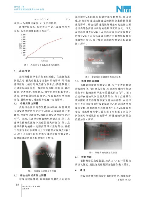 3.2 熔合线附近腐蚀坑测量 在役管道腐蚀坑深度的 DR 检测中, 图像灰度