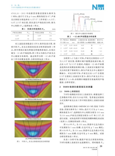 TOFD 检测上表面盲区也逐渐增大。同时随着 P CS