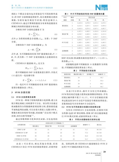 3 SVM 分类识别 从 表2可 以 看 出 , 除 叶 片 分 层 之 外 的 缺 陷 ,