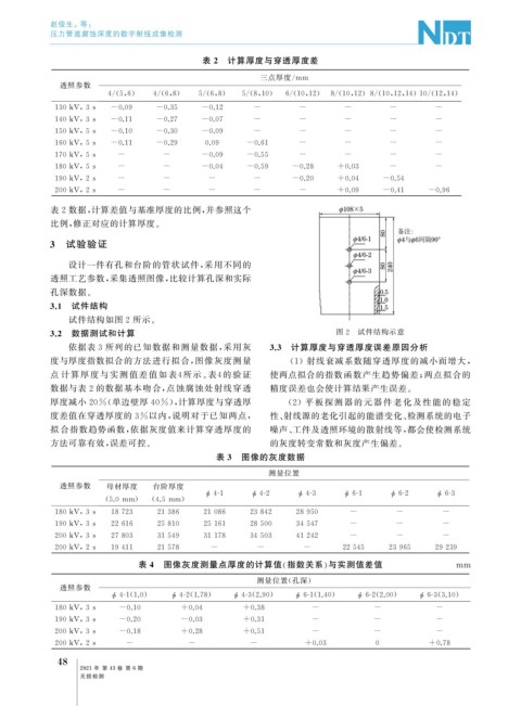 厚度减小 20% ( 单边壁厚 40% ), 计算厚度与穿透厚 ( 2 )平板探测器的 元 器 件 老 化 及 性 能 的 稳 定
