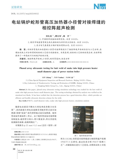 Ke ywords : PAUT ; smalldiametertube ; snaketubehi g hp ressureheater ; simulationanal y sis