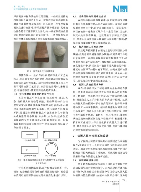 挤压棒材外观如图 1 所示。被测件形状的不规则会 在挤压棒材的典型缺陷中, 皮下缩尾和分层缺
