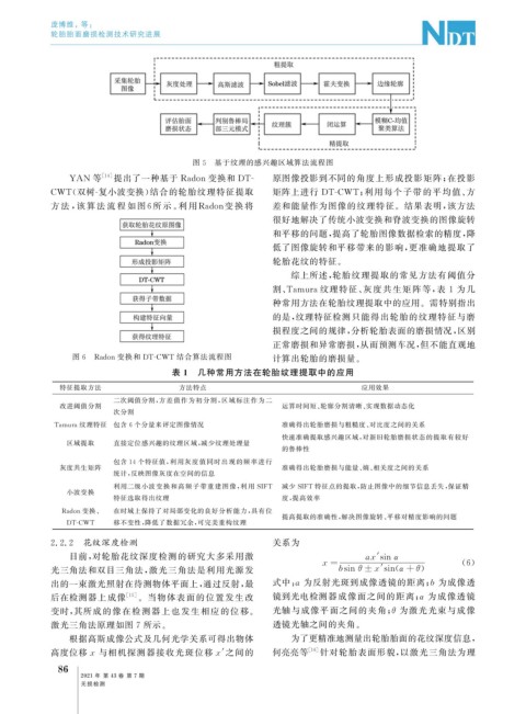 方 法 , 该 算 法 流 程 如 图 6 所 示 。 利 用Radon 变 换 将 差和能量作为图像的纹理特征。结果表明, 该方法