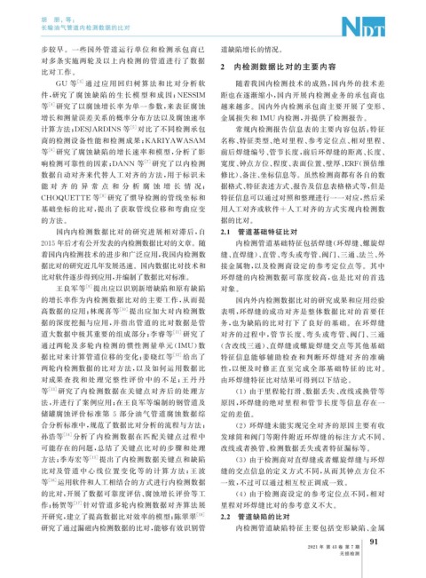 2015年后才有公开发表的内检测数据比对的文章。随 内检测管道基础特征包括焊缝( 环焊缝、 螺旋焊