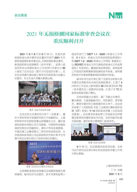2021 年 6 月 8 日至 6 月 11 日,全国无损 组成员进行了 GB/T 1.1—2020《标准化工作导
