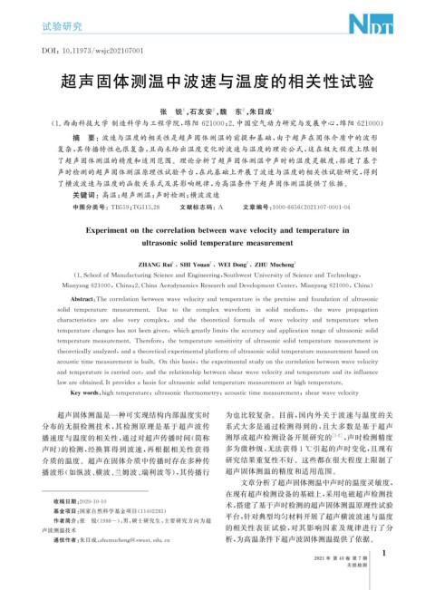 通信作者: 朱目成, zhumuchen g @swust.edu.cn 析, 为高温条件下超声波固体测温提供了依据。