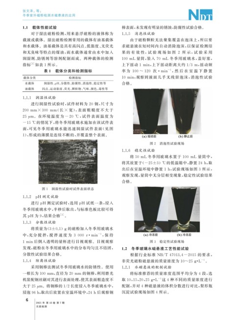 对于湿法磁粉检测, 用来悬浮磁粉的液体称为 1.1.5 消泡性试验