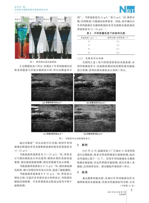 玻璃水配制的非荧光磁粉磁悬液的最佳质量浓度为 2 案例