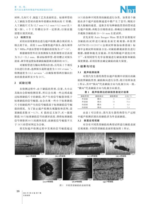 为20.5~21.5mm 。移动标准样管, 将切槽正对探头 干 [ 3 ] , 采用同型号光学显微镜进行缺陷观察和缺陷